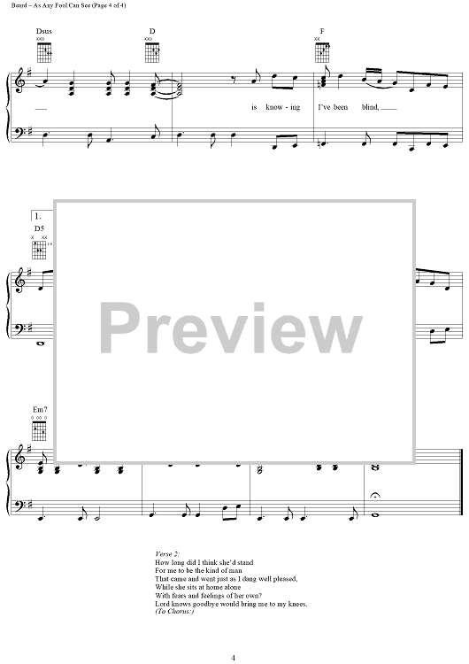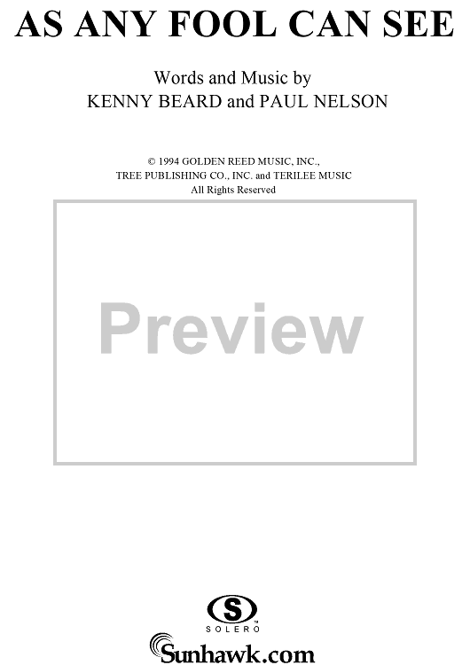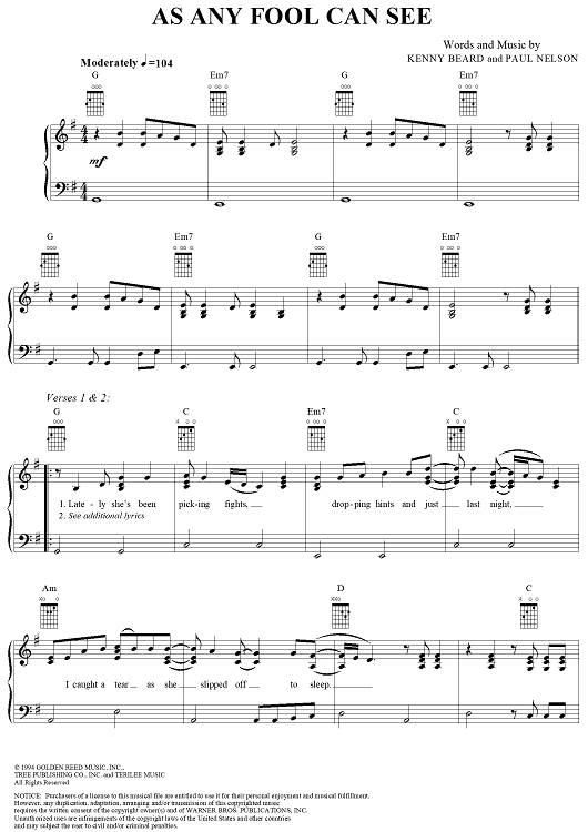 Digital Sheet Music for As Any Fool Can See by Tracy Lawrence, Paul Nelson, Kenny Beard scored for Piano/Vocal/Chords; id:275740