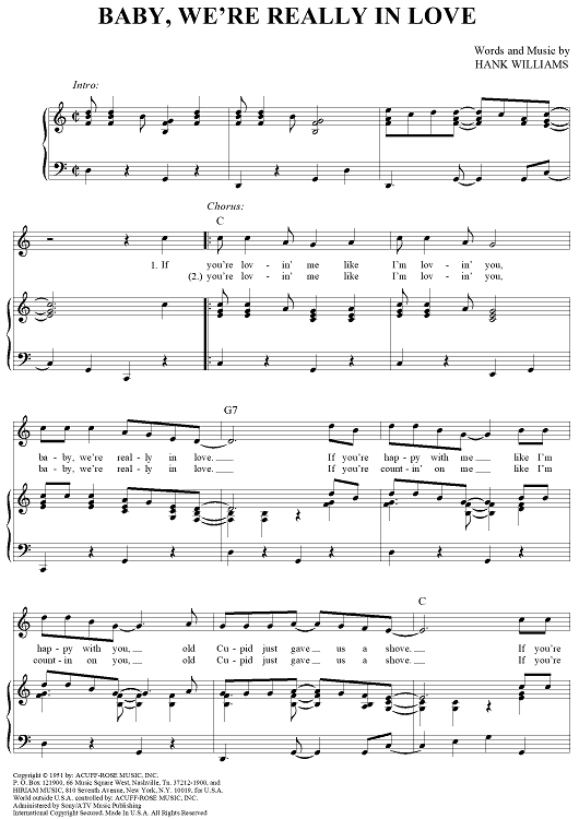 "Baby, We're Really In Love" Sheet Music by Hank Williams