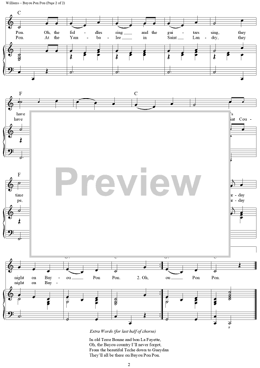 Digital Sheet Music for Bayou Pon Pon by Hank Williams, Jimmie Davis scored for Piano/Vocal/Chords; id:263907