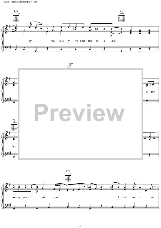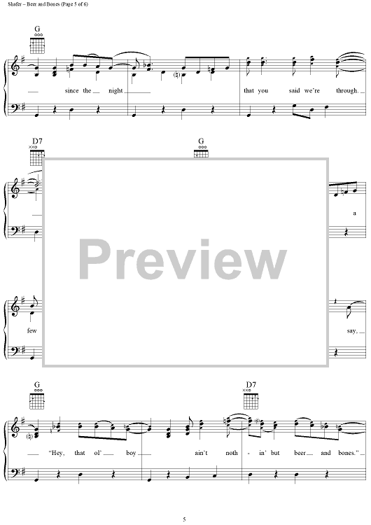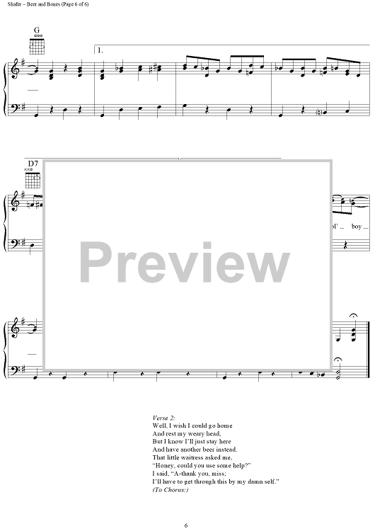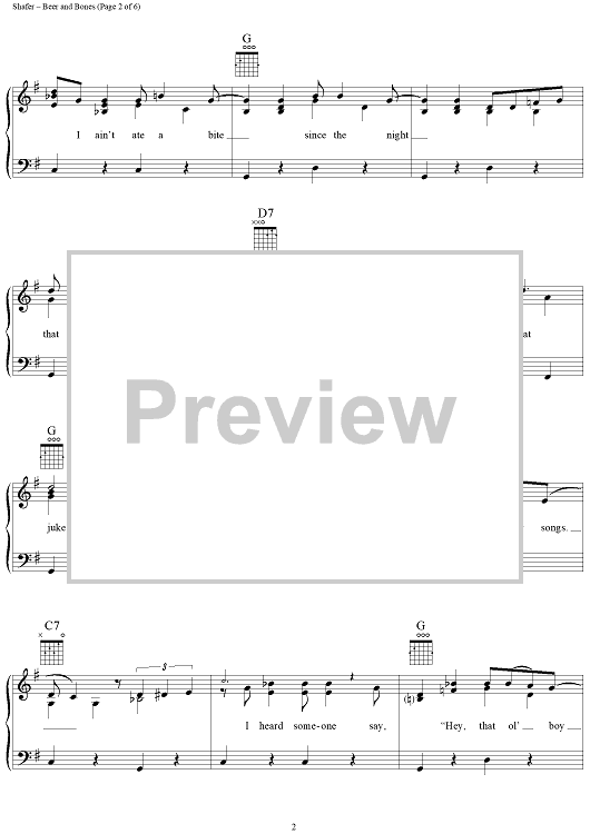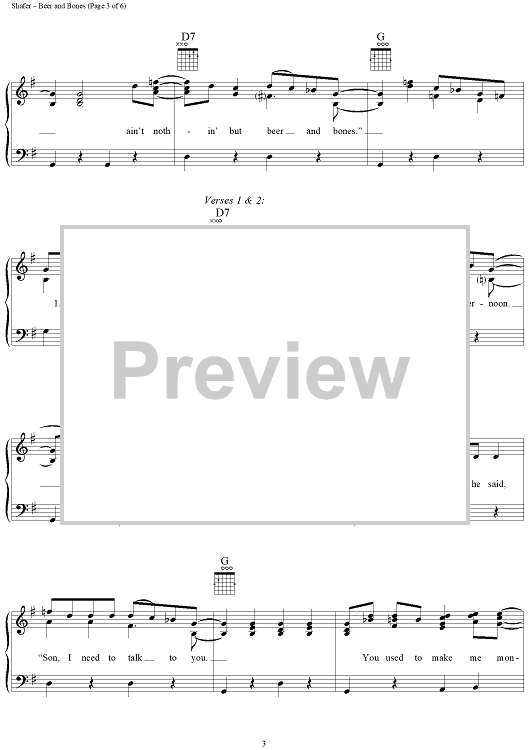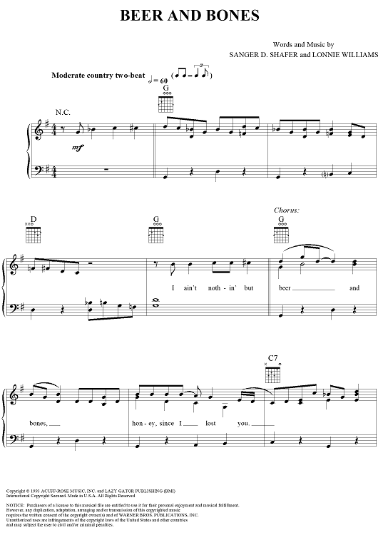 Digital Sheet Music for Beer And Bones by John Michael Montgomery, Lonnie Williams, Sanger D. Shafer scored for Piano/Vocal/Chords; id:257536