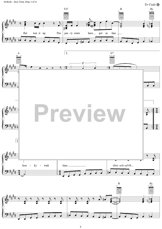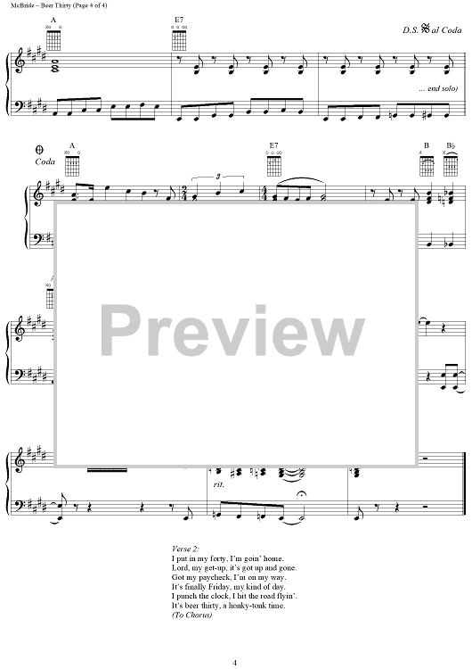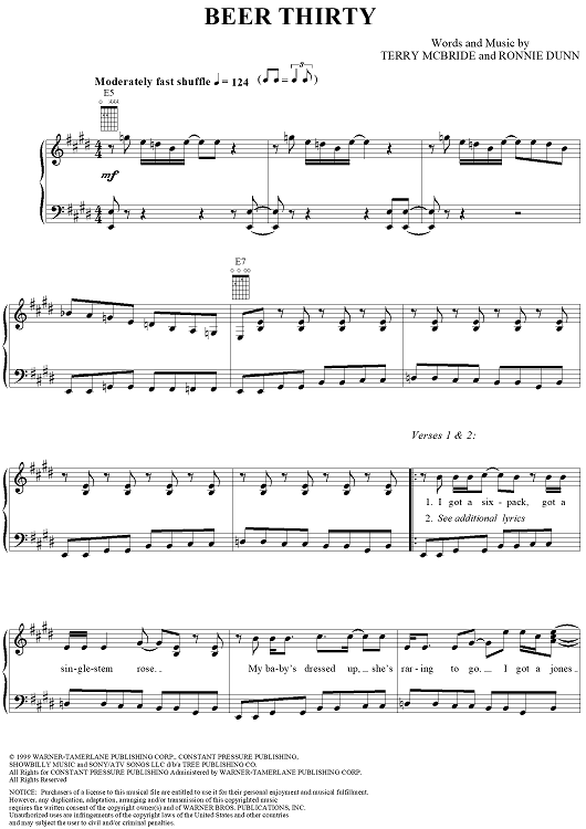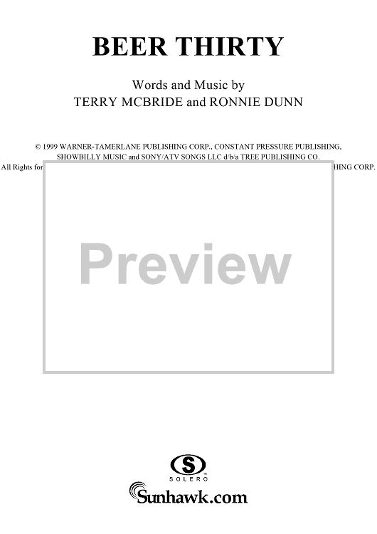 Digital Sheet Music for Beer Thirty by Terry McBride, Ronnie Dunn, Brooks & Dunn scored for Piano/Vocal/Chords; id:154766