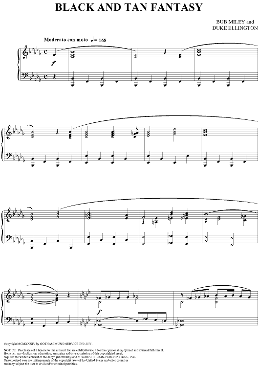 "Black And Tan Fantasy" Sheet Music by Duke Ellington