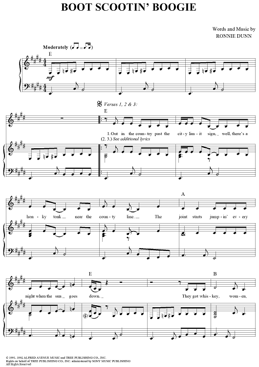 Digital Sheet Music for Boot Scootin' Boogie by Ronnie Dunn, Brooks & Dunn scored for Piano/Vocal/Chords; id:271311