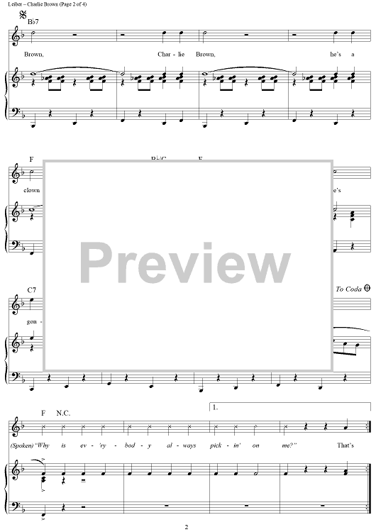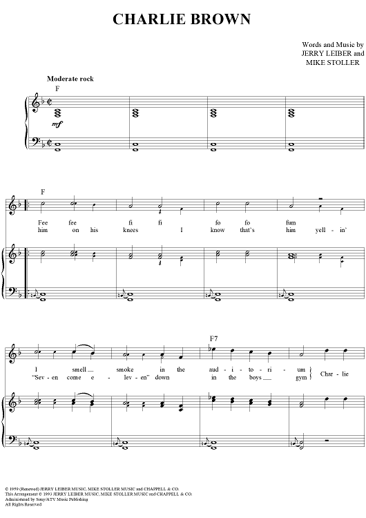Digital Sheet Music for Charlie Brown by Jerry Leiber, Mike Stoller, The Coasters scored for Piano/Vocal/Chords; id:250647