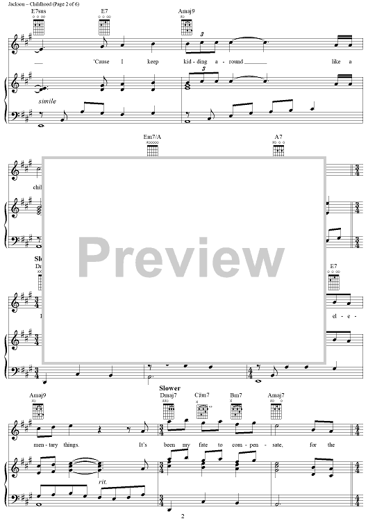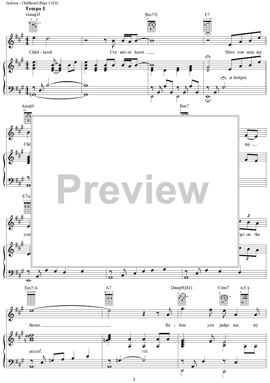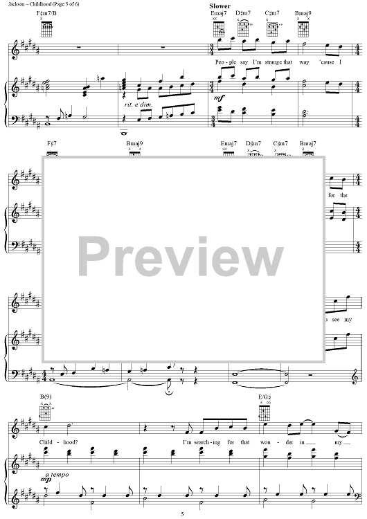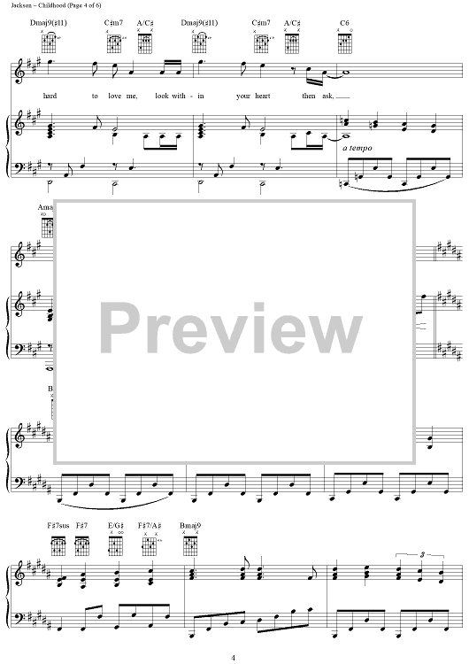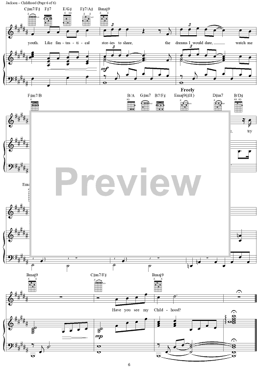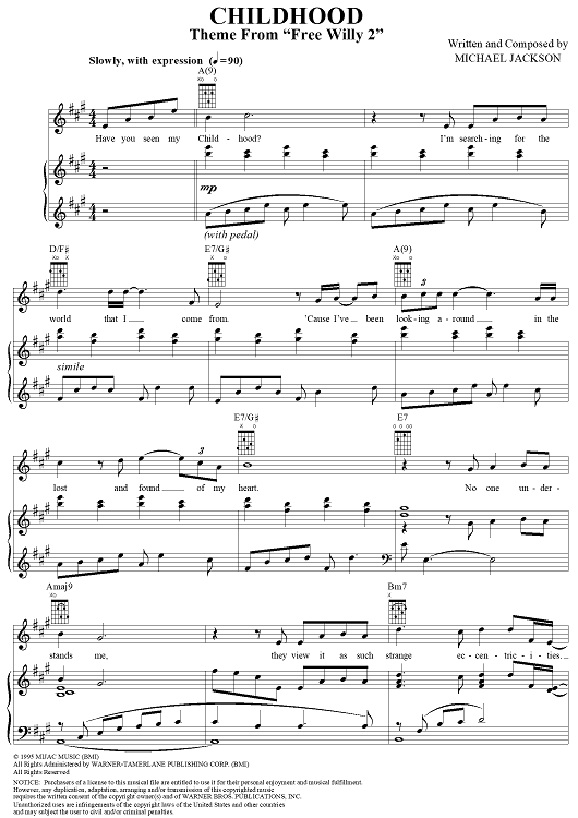 Digital Sheet Music for Childhood by Michael Jackson scored for Piano/Vocal/Chords; id:286011