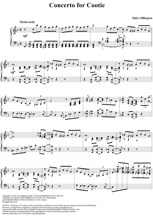 Digital Sheet Music for Concerto For Cootie by Duke Ellington scored for Piano Solo; id:111736