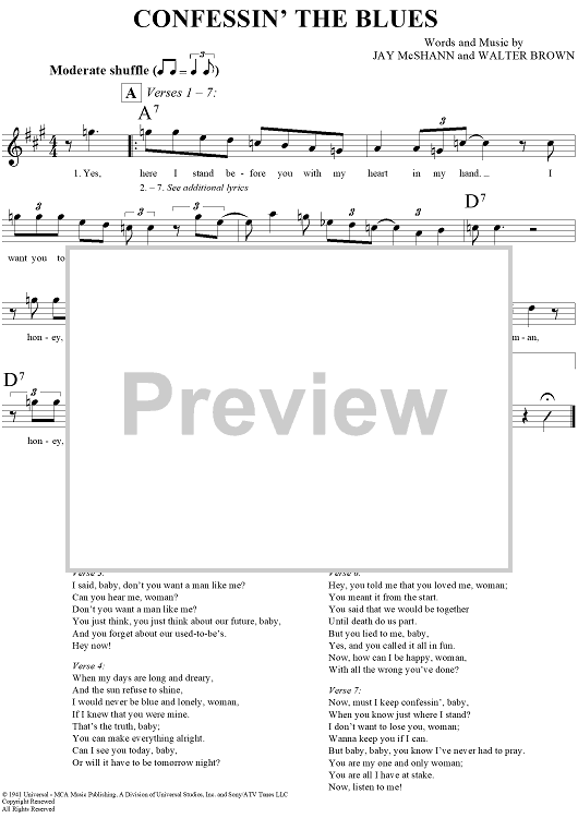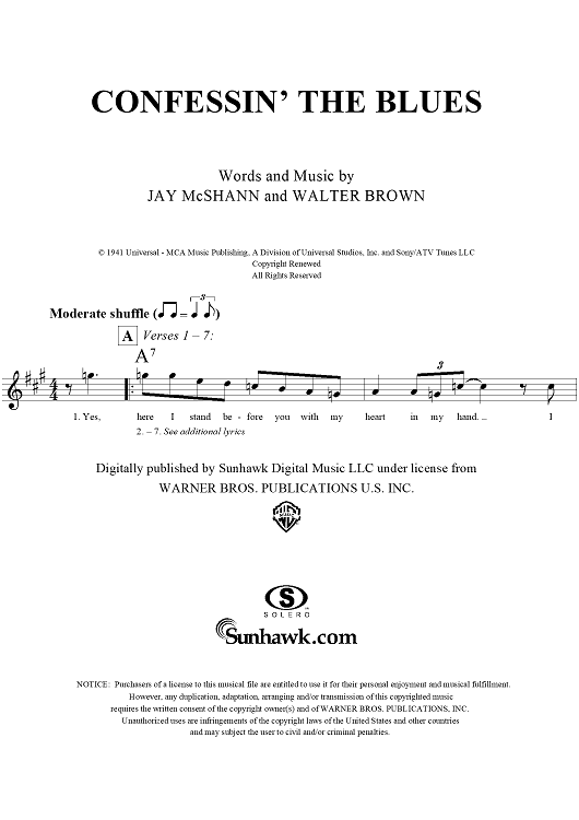 Digital Sheet Music for Confessin' the Blues by Jay McShann, Walter Brown scored for Lead Sheet; id:290847