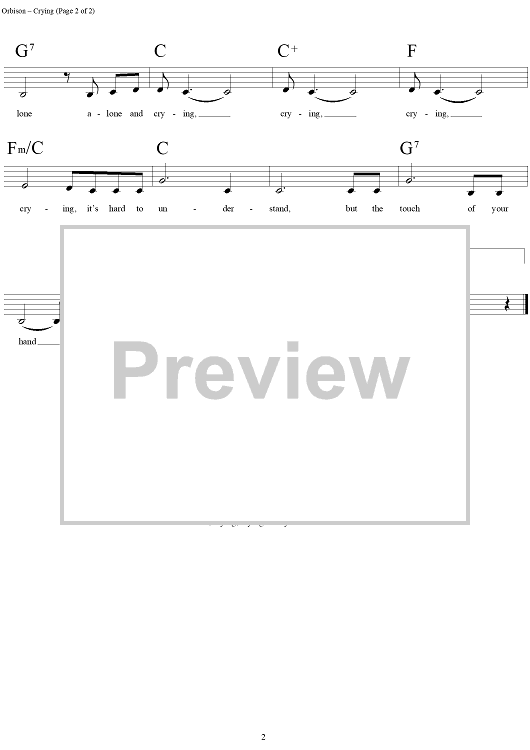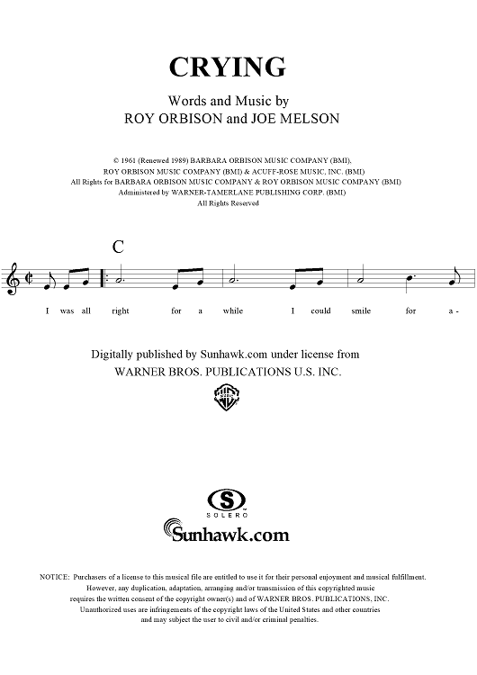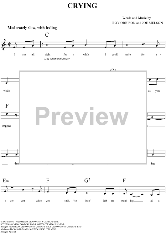 Digital Sheet Music for Crying by Roy Orbison, Joe Melson scored for Lead Sheet; id:131763