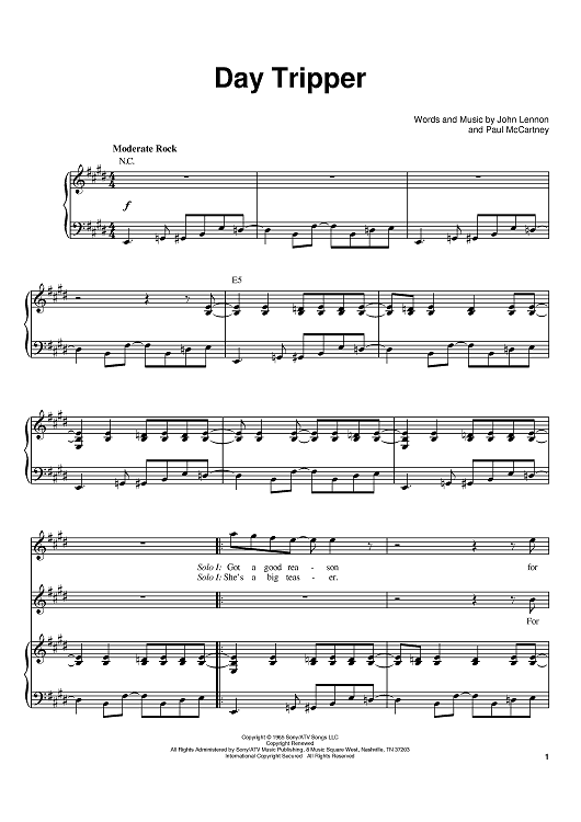 Digital Sheet Music for Day Tripper by Paul McCartney, The Beatles, John Lennon scored for Piano/Vocal/Chords; id:371691