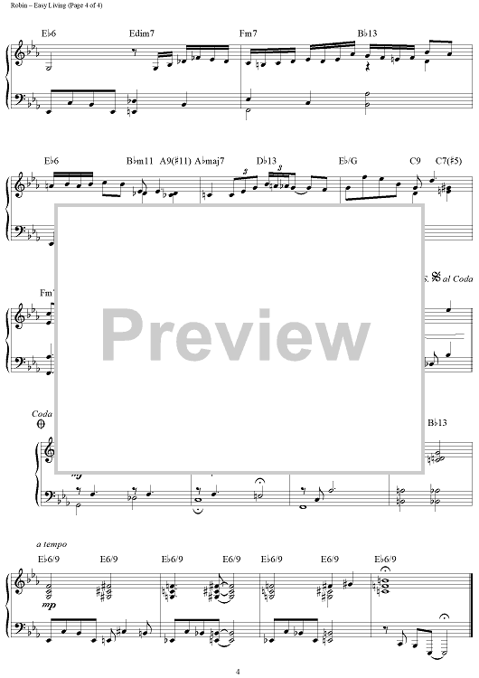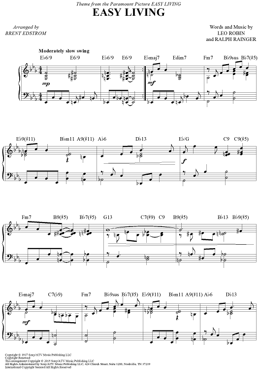 Digital Sheet Music for Easy Living by Leo Robin, Ralph Rainger, Brent Edstrom scored for Piano Solo; id:459941
