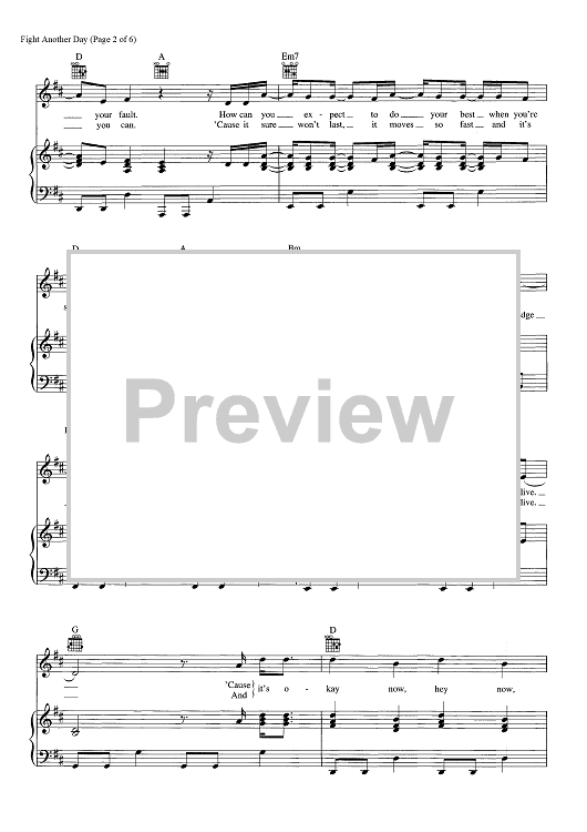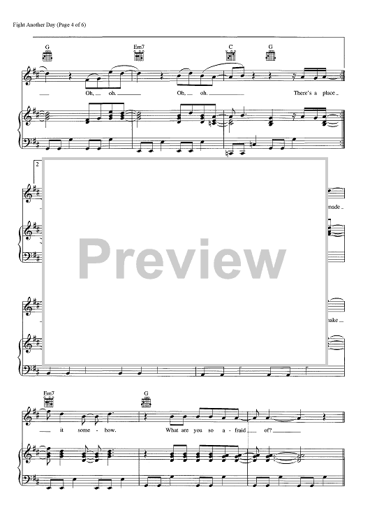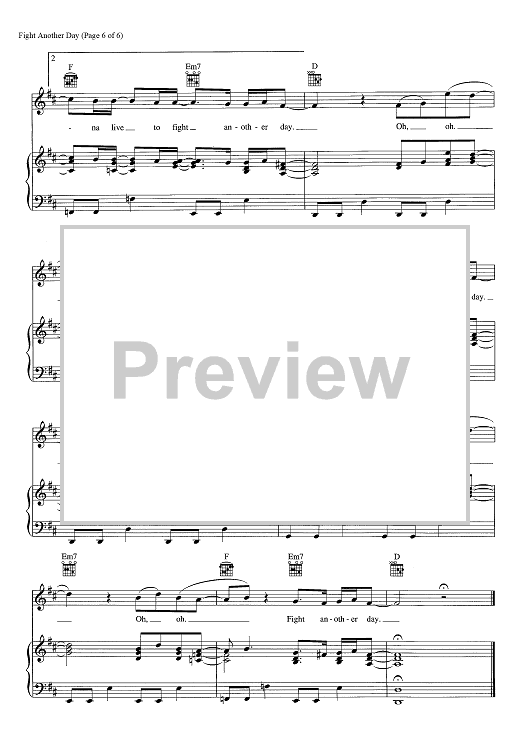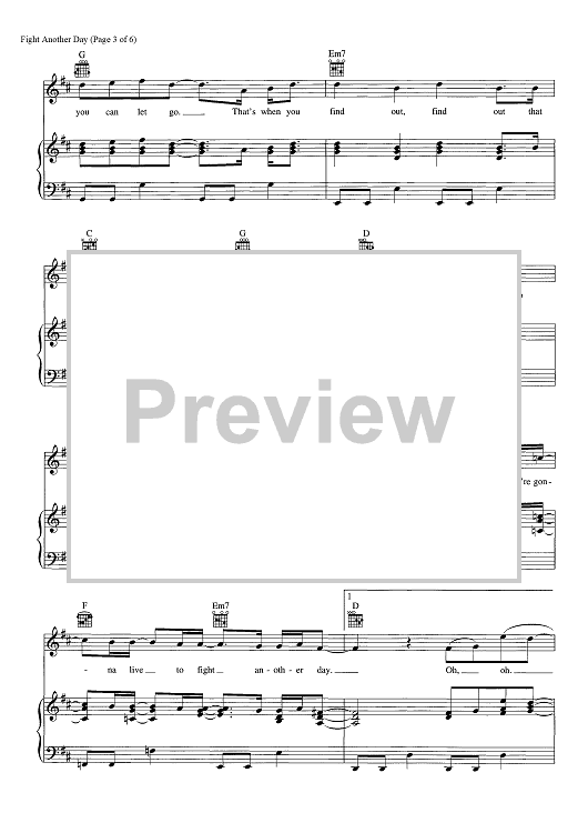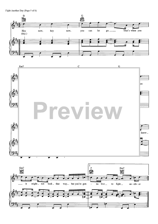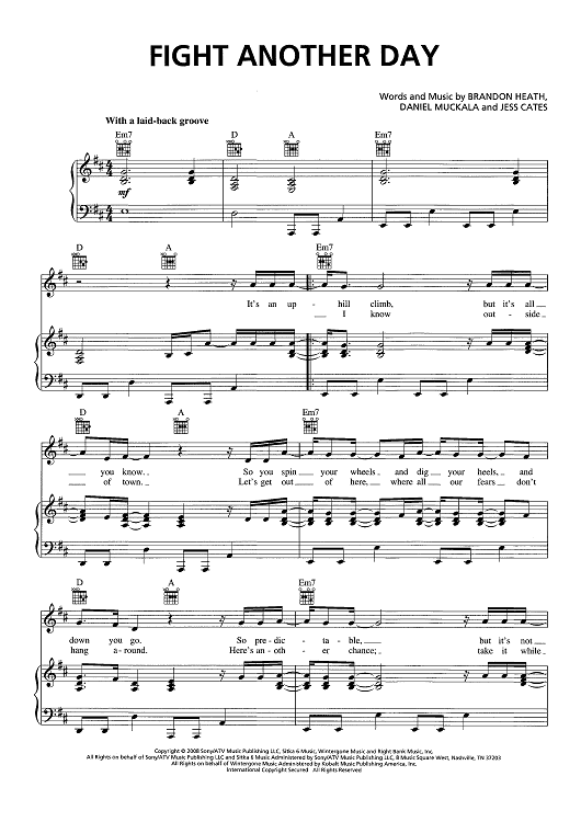 Digital Sheet Music for Fight Another Day by Jess Cates, Daniel Muckala, Brandon Heath scored for Piano/Vocal/Chords; id:460434