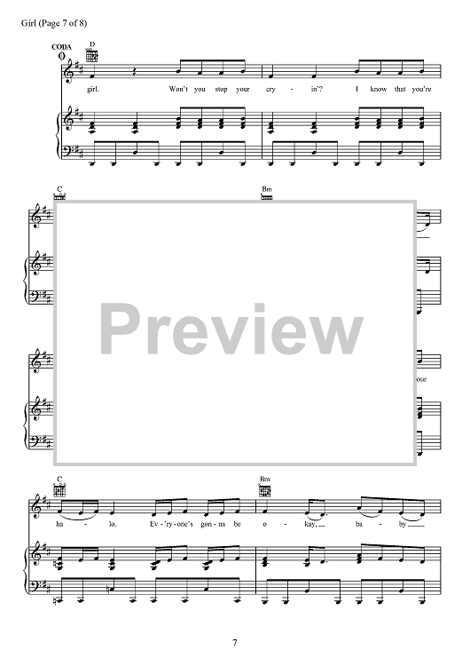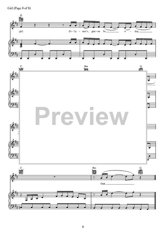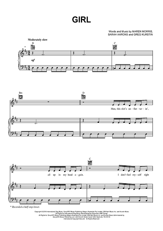 Digital Sheet Music for Girl by Greg Kurstin, Maren Morris, Sarah Aarons scored for Piano/Vocal/Chords; id:467278