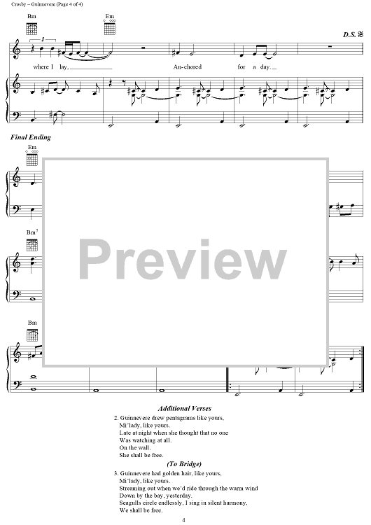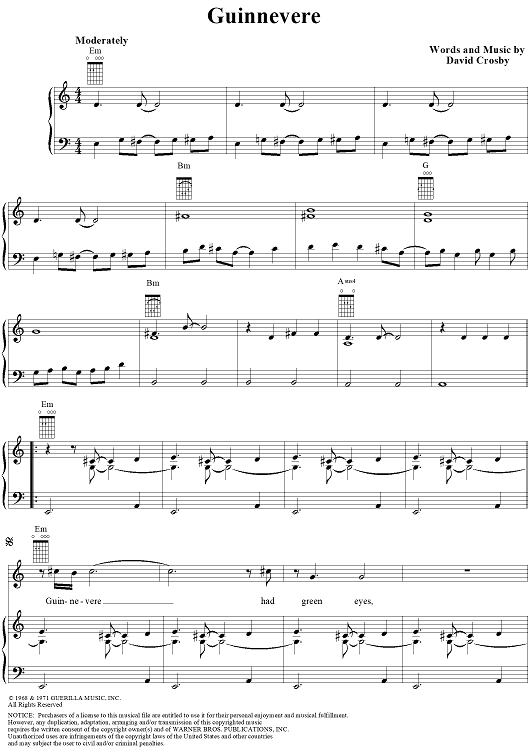 Digital Sheet Music for Guinnevere by David Crosby, Crosby, Stills & Nash scored for Piano/Vocal/Chords; id:112243