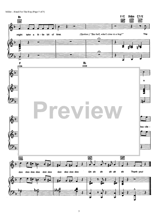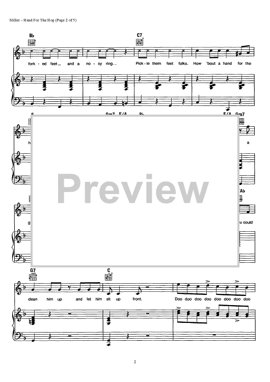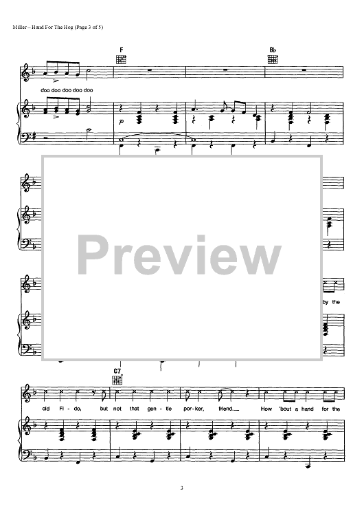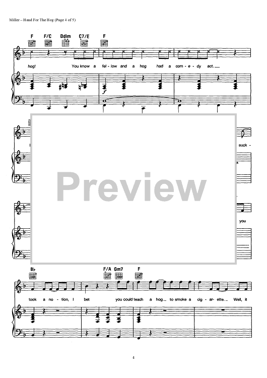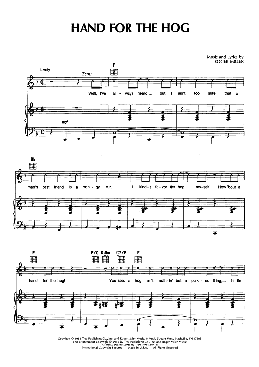Digital Sheet Music for Hand For The Hog by Roger Miller scored for Piano/Vocal/Chords; id:441880