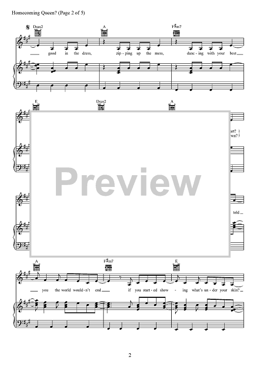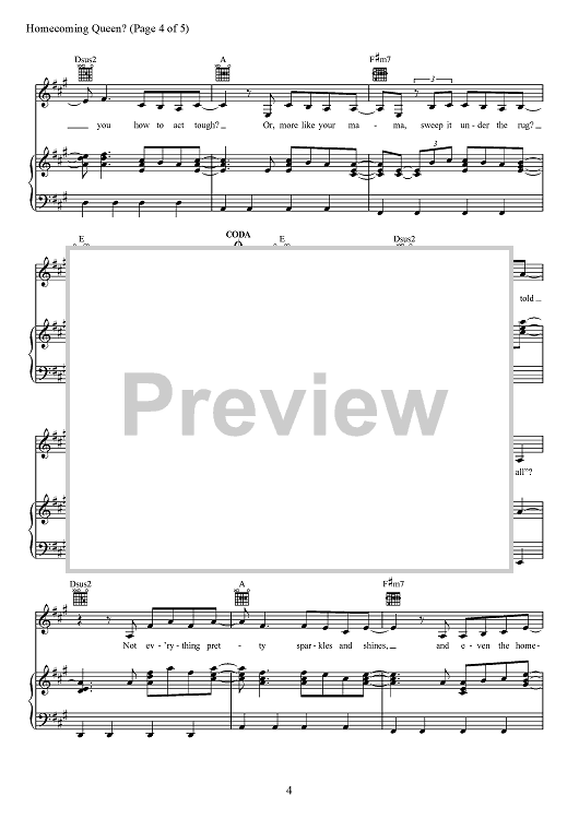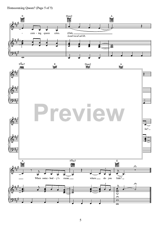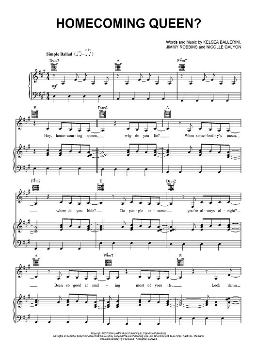 Digital Sheet Music for Homecoming Queen? by Jimmy Robbins, Nicolle Galyon, Kelsea Ballerini scored for Piano/Vocal/Chords; id:467813