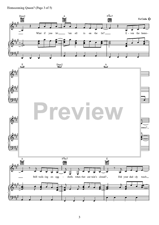 "Homecoming Queen?" Sheet Music by Kelsea Ballerini
