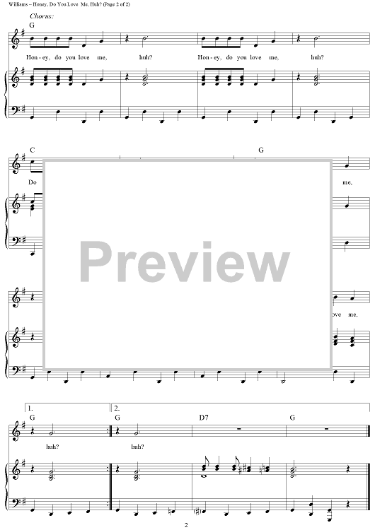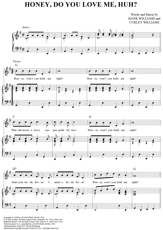 Digital Sheet Music for Honey, Do You Love Me, Huh? by Hank Williams, Curley Williams scored for Piano/Vocal/Chords; id:264010