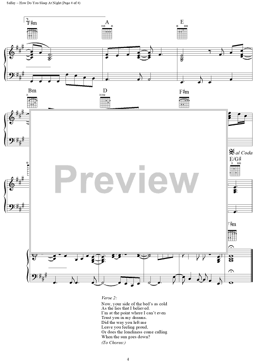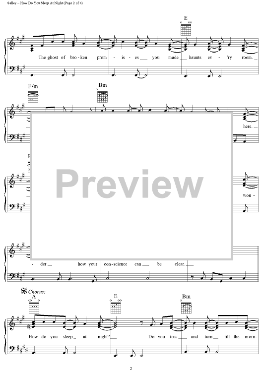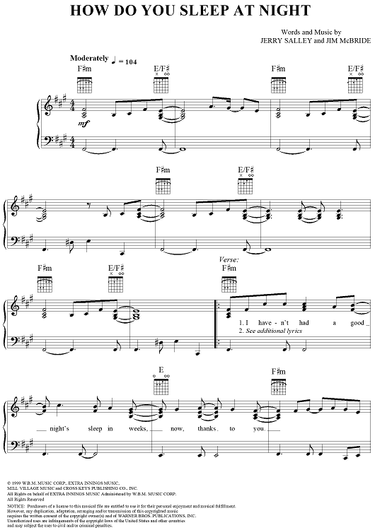 Digital Sheet Music for How Do You Sleep At Night? by Wade Hayes, Jerry Salley, Jim McBride scored for Piano/Vocal/Chords; id:256026
