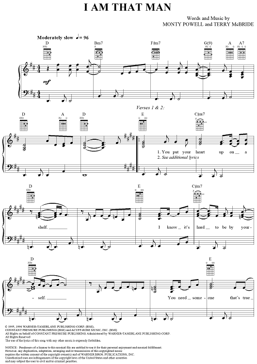 Digital Sheet Music for I Am That Man by Terry McBride, Monty Powell scored for Piano/Vocal/Chords; id:254917