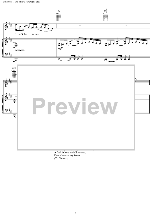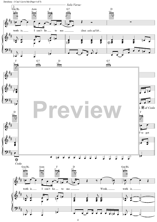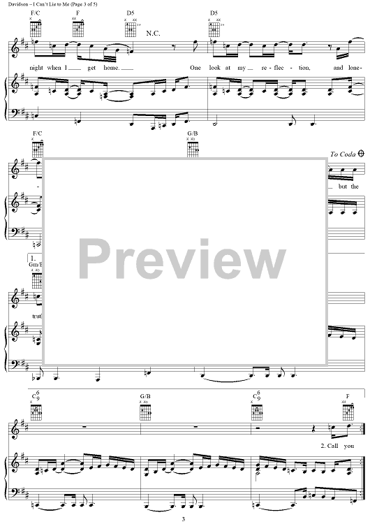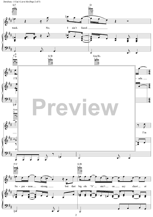 "I Can't Lie to Me" Sheet Music by Clay Davidson