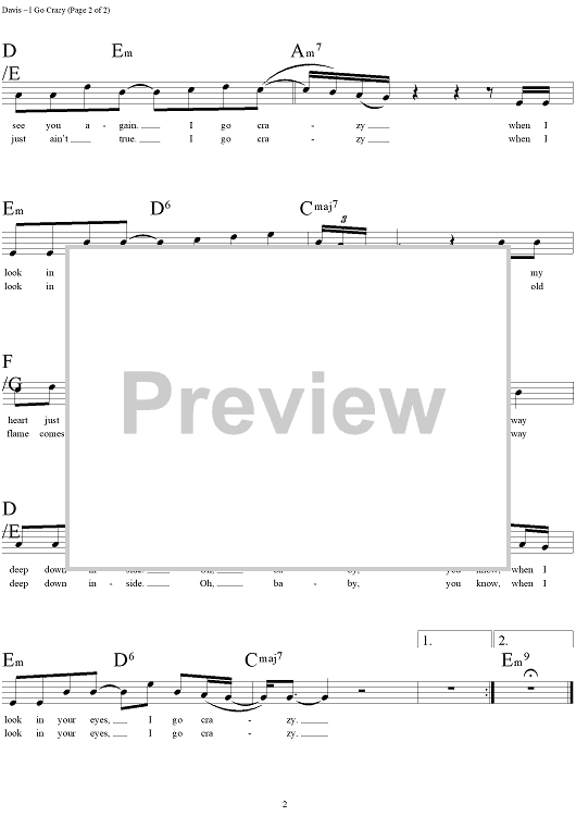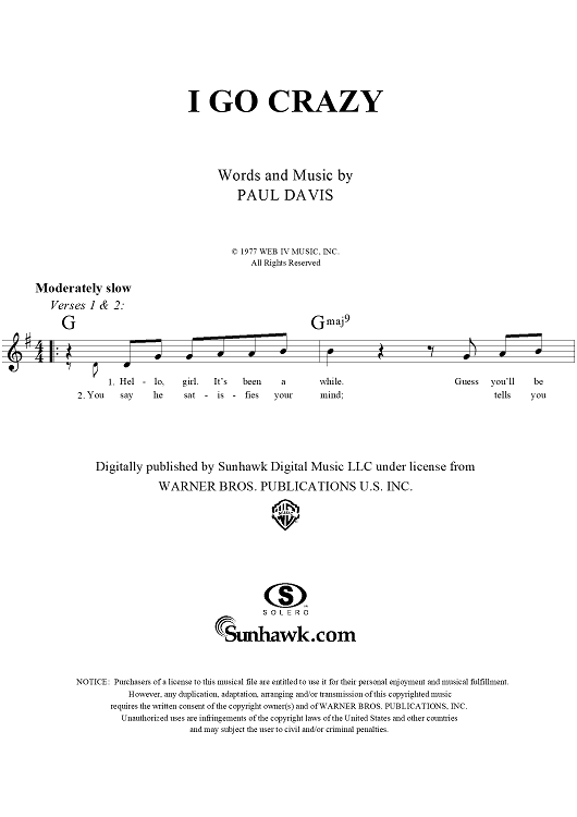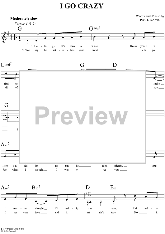 Digital Sheet Music for I Go Crazy by Paul Davis scored for Lead Sheet; id:272616