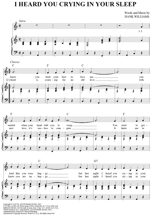 "I Heard You Crying in Your Sleep" Sheet Music by Hank Williams
