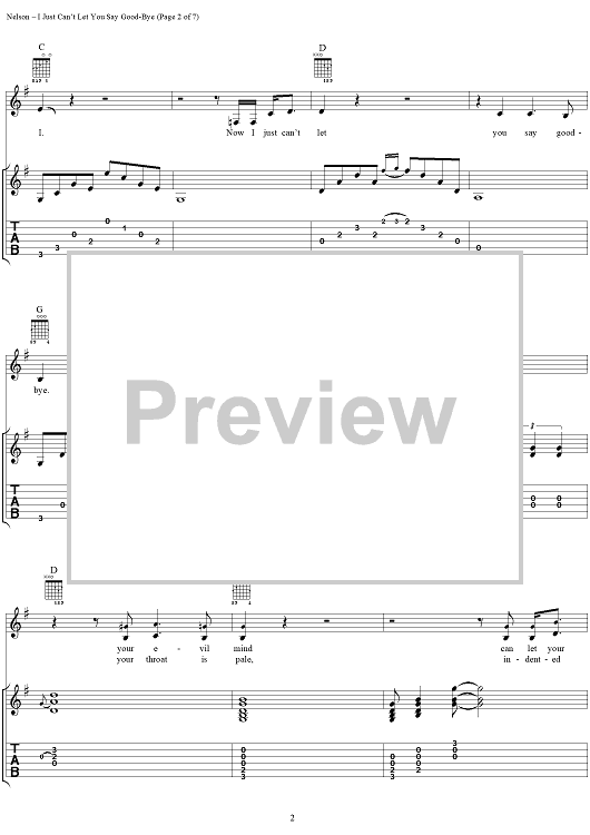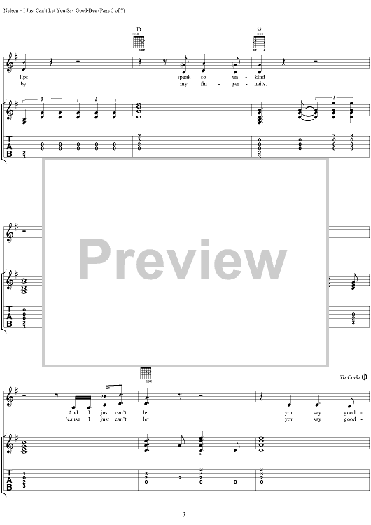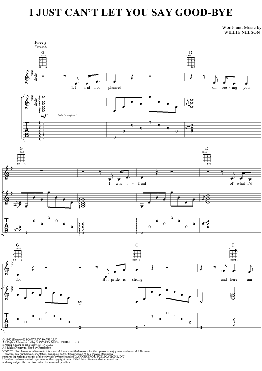 "I Just Can't Let You Say Good-Bye" Sheet Music by Willie Nelson