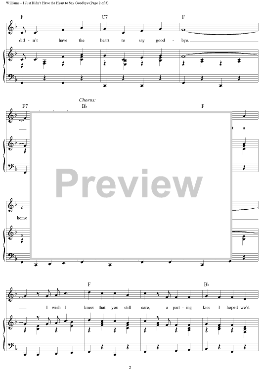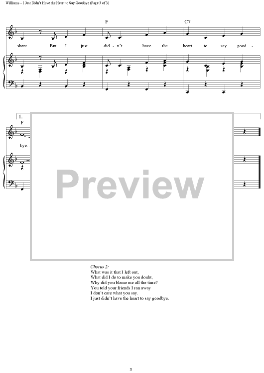 Digital Sheet Music for I Just Didn't Have the Heart to Say Goodbye by Hank Williams, Hank Williams, Jr. scored for Piano/Vocal/Chords; id:263737