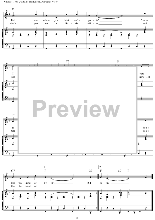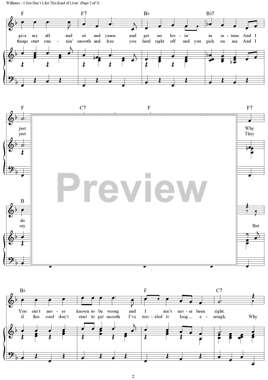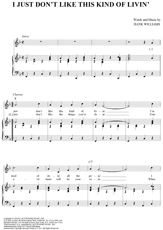 Digital Sheet Music for I Just Don't Like This Kind of Livin' by Hank Williams scored for Piano/Vocal/Chords; id:263739