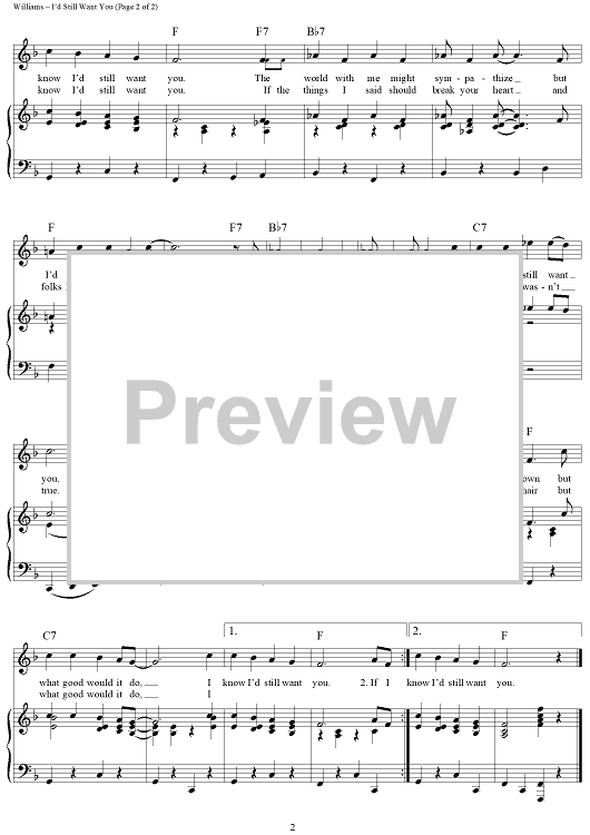 Digital Sheet Music for I'd Still Want You by Hank Williams scored for Piano/Vocal/Chords; id:263879