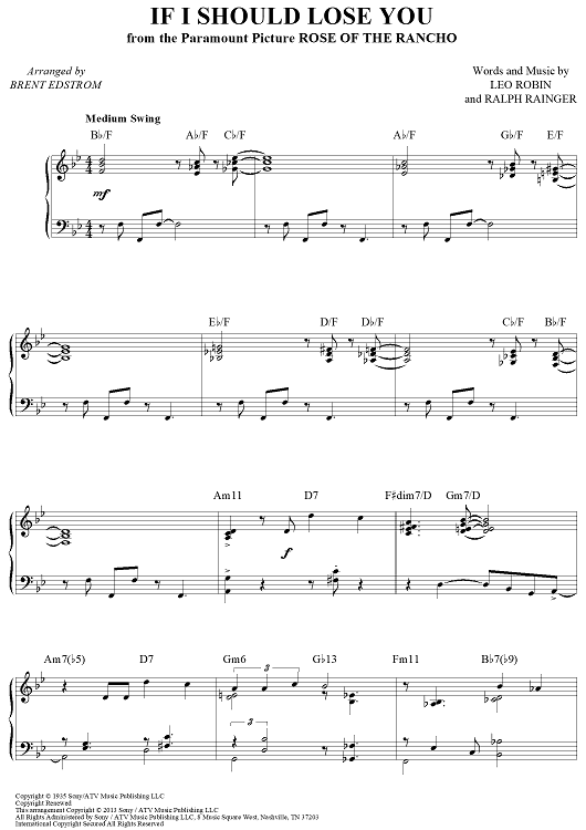 Digital Sheet Music for If I Should Lose You by Leo Robin, Ralph Rainger, Brent Edstrom scored for Piano Solo; id:464822