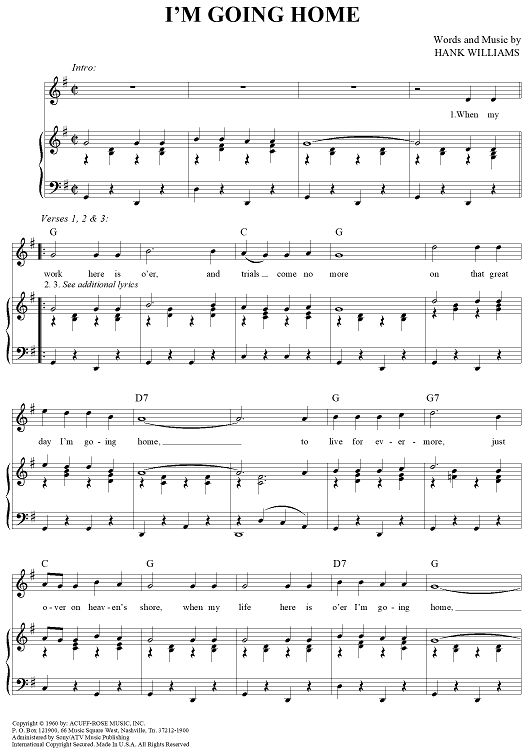 Digital Sheet Music for I'm Going Home by Hank Williams scored for Piano/Vocal/Chords; id:263779
