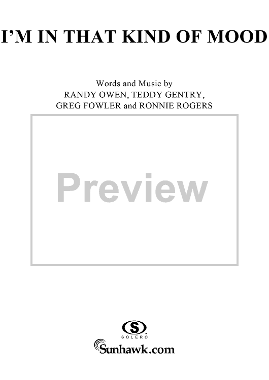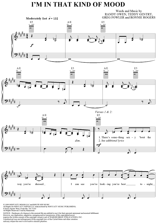 Digital Sheet Music for I'm in That Kind of Mood by Greg Fowler, Randy Owen, Teddy Gentry, Ronnie Rogers, Alabama scored for Piano/Vocal/Chords; id:253644