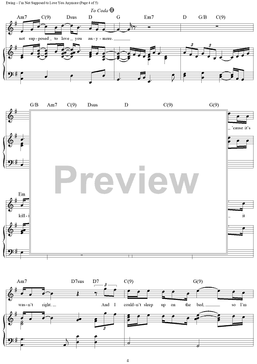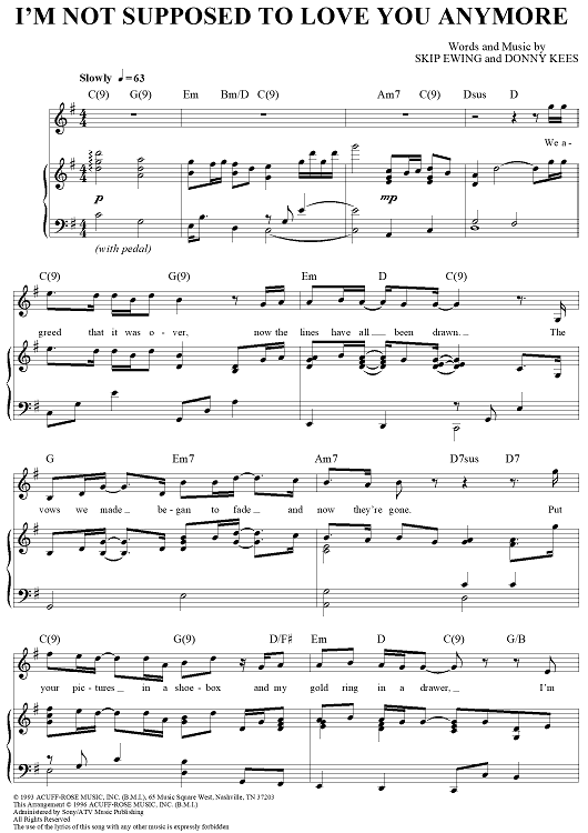 Digital Sheet Music for I'm Not Supposed to Love You Anymore by Bryan White, Skip Ewing, Donny Kees scored for Piano/Vocal/Chords; id:270025