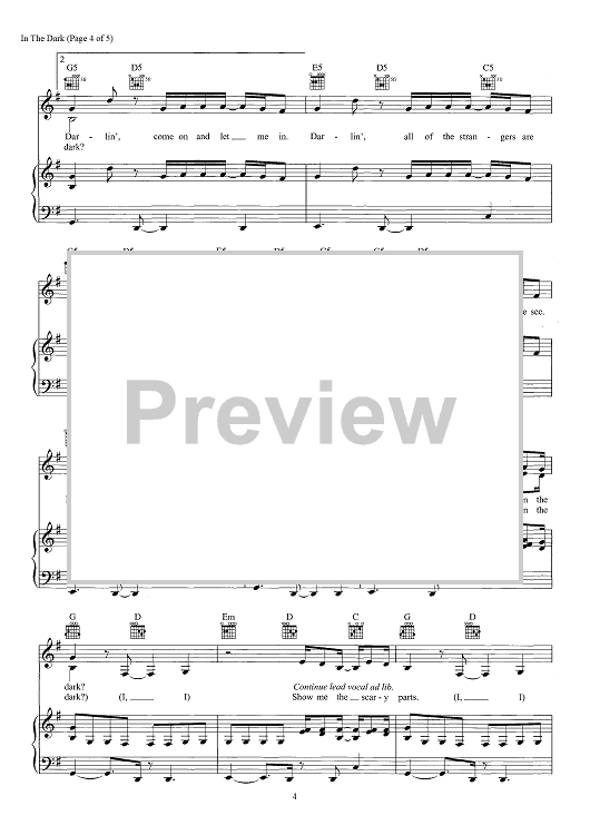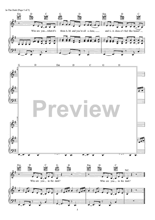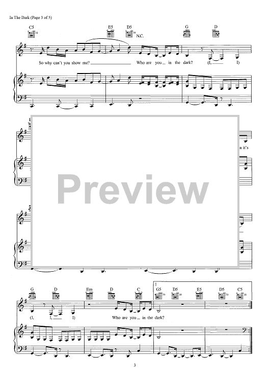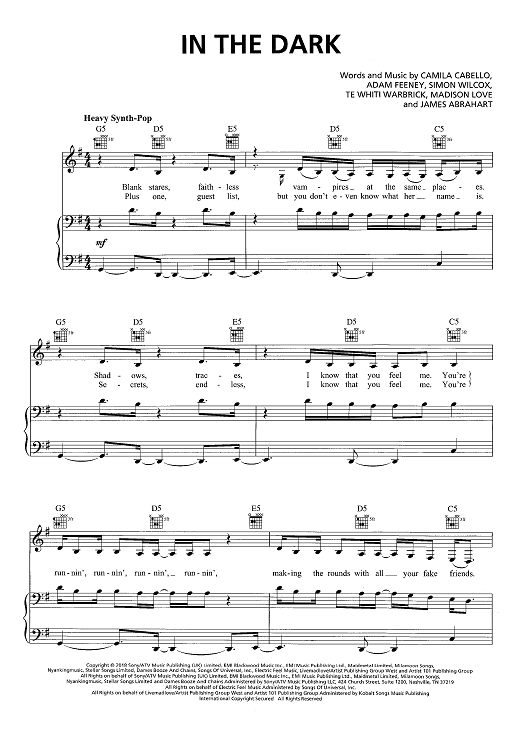 Digital Sheet Music for In The Dark by Simon Wilcox, James Abrahart, Te Whiti Te Rangitepaia Warbrick, Camila Cabello, Adam Feeney, Madison Love scored for Piano/Vocal/Chords; id:466315