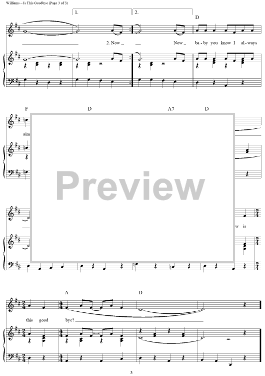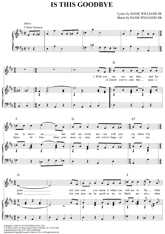 Digital Sheet Music for Is This Goodbye by Hank Williams, Hank Williams, Jr. scored for Piano/Vocal/Chords; id:263878