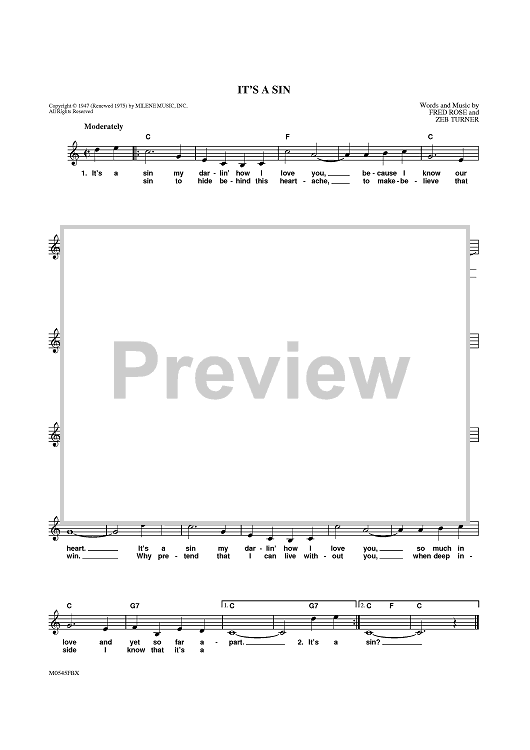 Digital Sheet Music for It's a Sin by Fred Rose, Eddy Arnold, Zeb Turner scored for Lead Sheet; id:410849