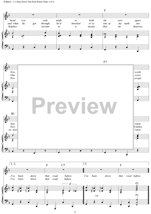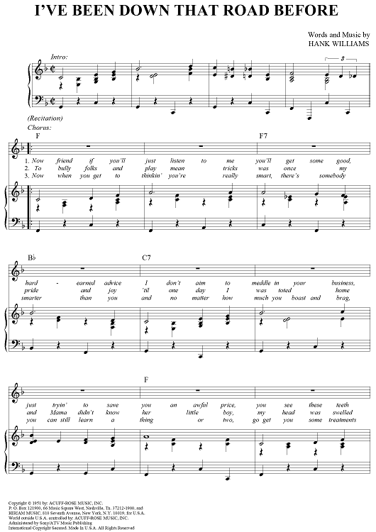 "I've Been Down That Road Before" Sheet Music by Hank Williams