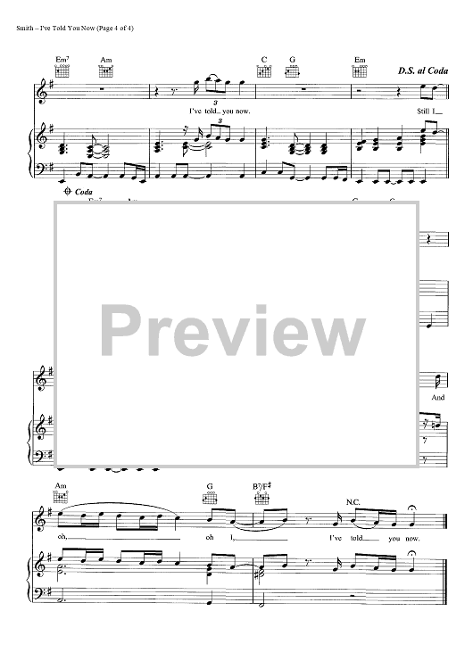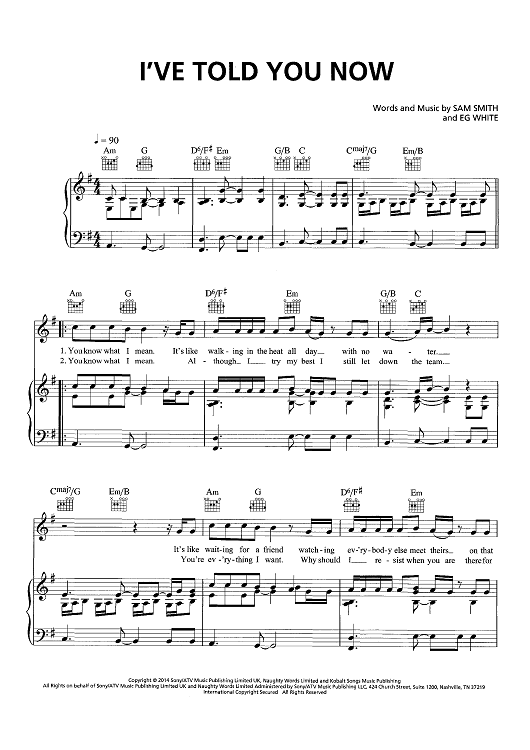 Digital Sheet Music for I've Told You Now by Eg White, Sam Smith scored for Piano/Vocal/Chords; id:445155
