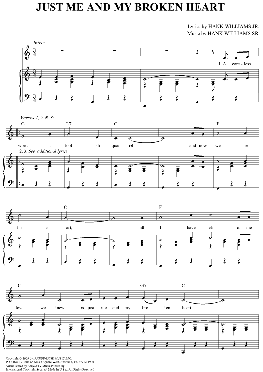 Digital Sheet Music for Just Me and My Broken Heart by Hank Williams, Hank Williams, Jr. scored for Piano/Vocal/Chords; id:263743