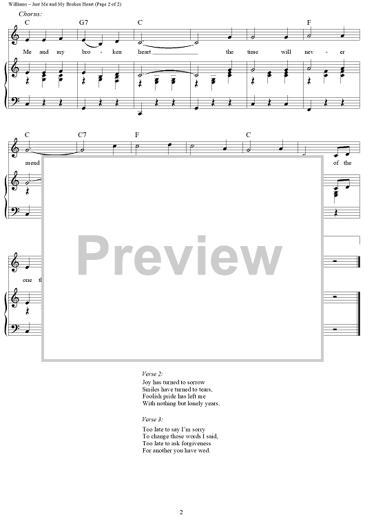 "Just Me and My Broken Heart" Sheet Music by Hank Williams