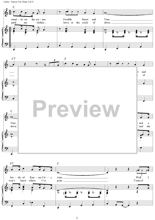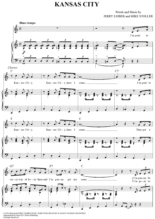 Digital Sheet Music for Kansas City by Jerry Leiber, Mike Stoller, Wilbert Harrison scored for Piano/Vocal/Chords; id:250579