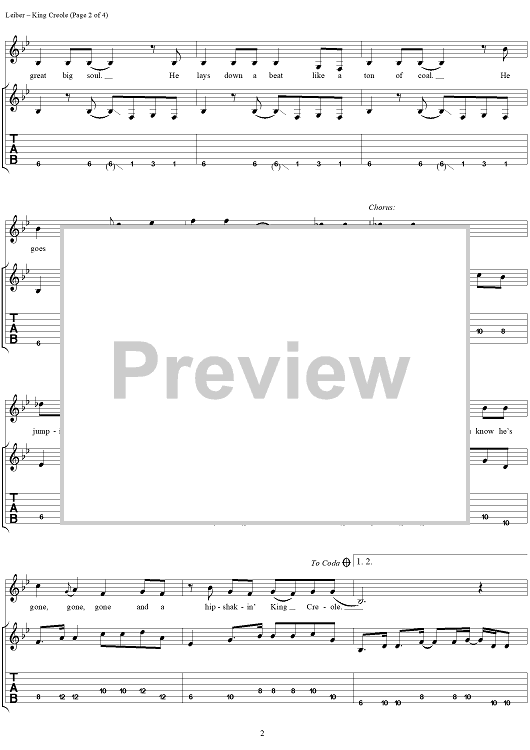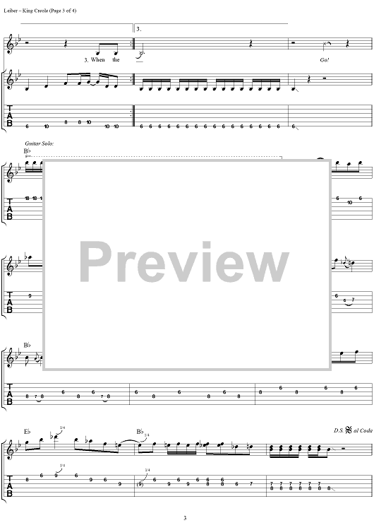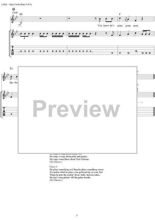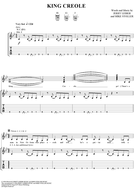Digital Sheet Music for King Creole by Elvis Presley, Jerry Leiber, Mike Stoller, Kenn Chipkin scored for Guitar Tab/Vocal; id:119987