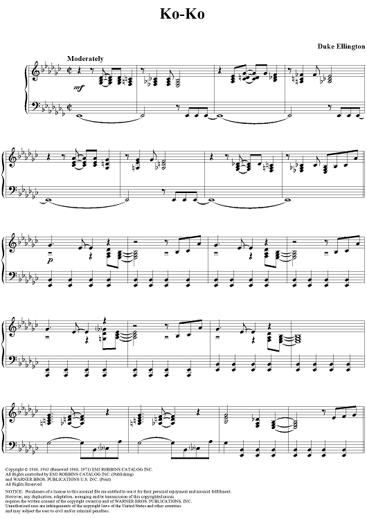 Digital Sheet Music for Ko-Ko by Duke Ellington scored for Piano Solo; id:111754