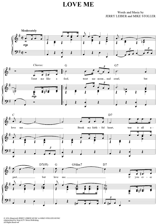 Digital Sheet Music for Love Me by Elvis Presley, Jerry Leiber, Mike Stoller scored for Piano/Vocal/Chords; id:124219