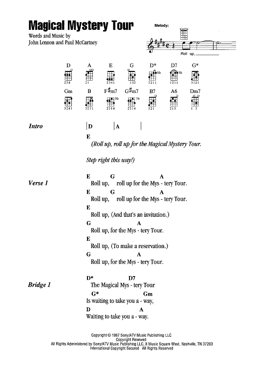 Digital Sheet Music for Magical Mystery Tour by Paul McCartney, The Beatles, John Lennon scored for Ukulele/Vocal; id:466397