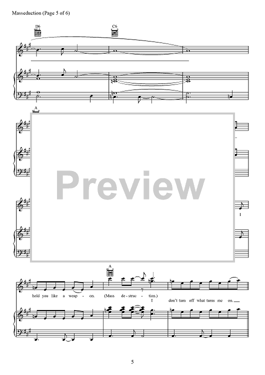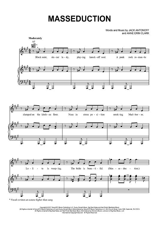Digital Sheet Music for Masseduction by Jack Antonoff, St. Vincent scored for Piano/Vocal/Chords; id:467279