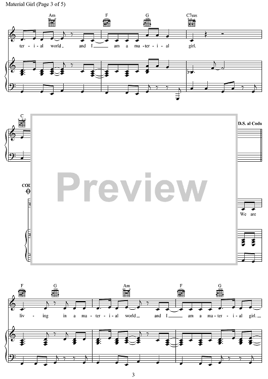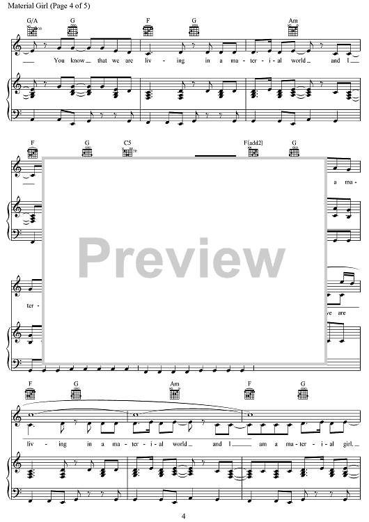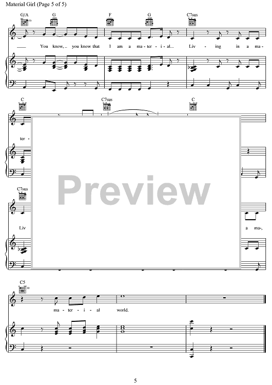 Digital Sheet Music for Material Girl (from the Amazon Original Movie Cinderella) by Peter Brown, Robert Rans, Idina Menzel scored for Piano/Vocal/Chords; id:469732