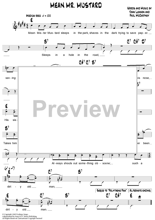 Digital Sheet Music for Mean Mr. Mustard by Paul McCartney, The Beatles, John Lennon scored for Lead Sheet; id:362115