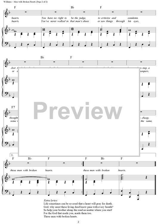 Digital Sheet Music for Men with Broken Hearts by Hank Williams scored for Piano/Vocal/Chords; id:263773